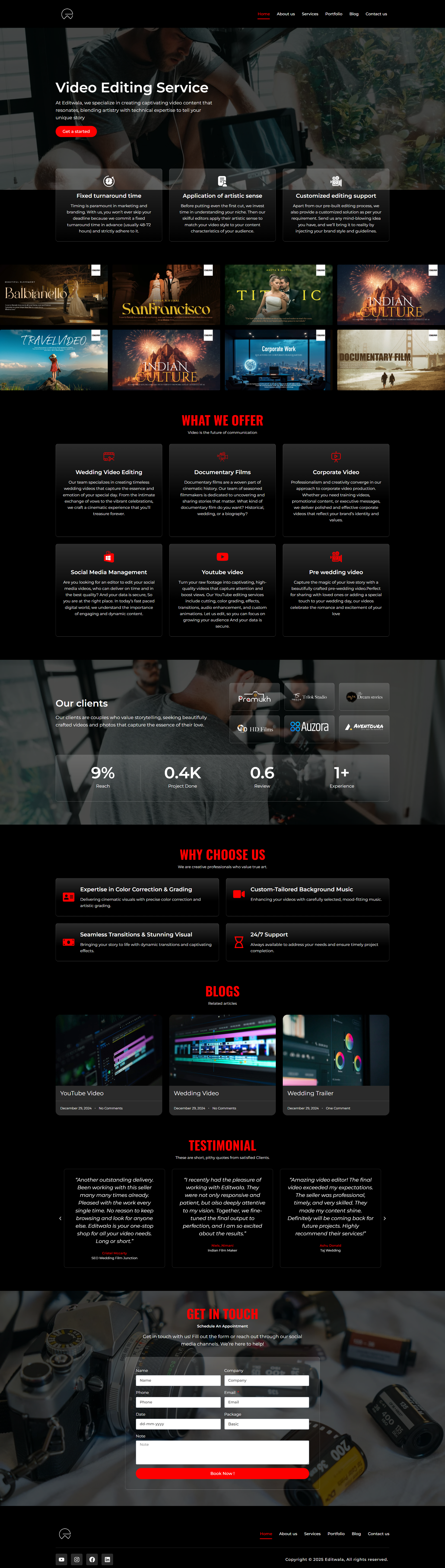 Designed a media-focused site highlighting video editing skills, pricing, and service showcase.